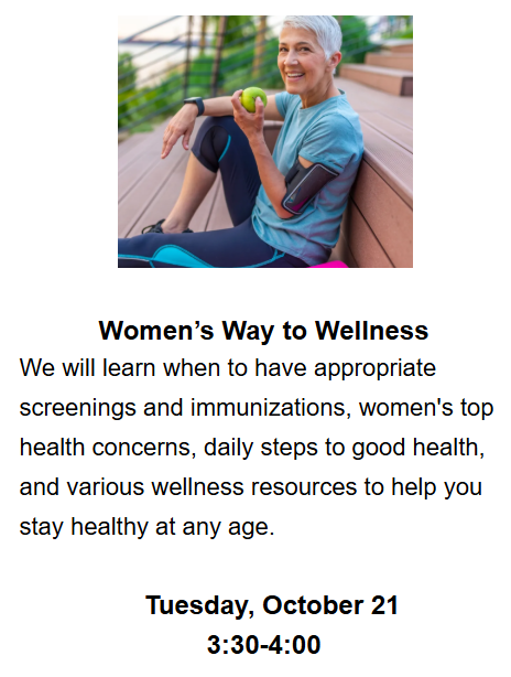 Each month is a new topic. Don’t miss out. Some of the topics include, blood pressure basics, gut health, vitamin D and even a grocery store tour.